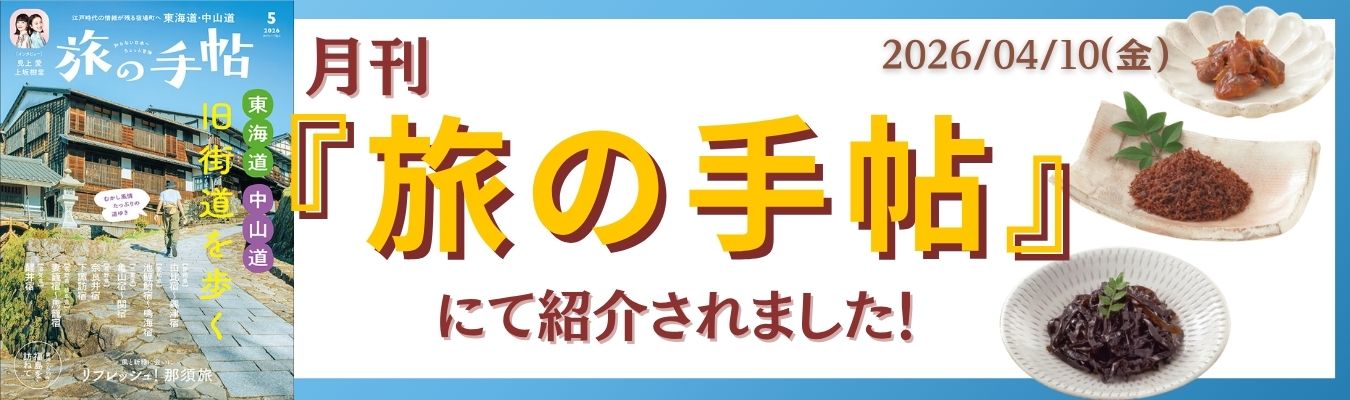- 【メディア情報】4/10 「月刊『旅の手帖』5月号」にて、「佃煮」が紹介されました。