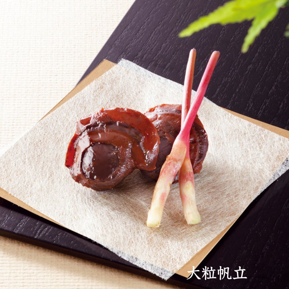 | 【大粒帆立】 | 帆立貝(国産)、還元水飴、醤油(小麦・大豆を含む)、本みりん、発酵調味料、清酒、砂糖、生姜 | |