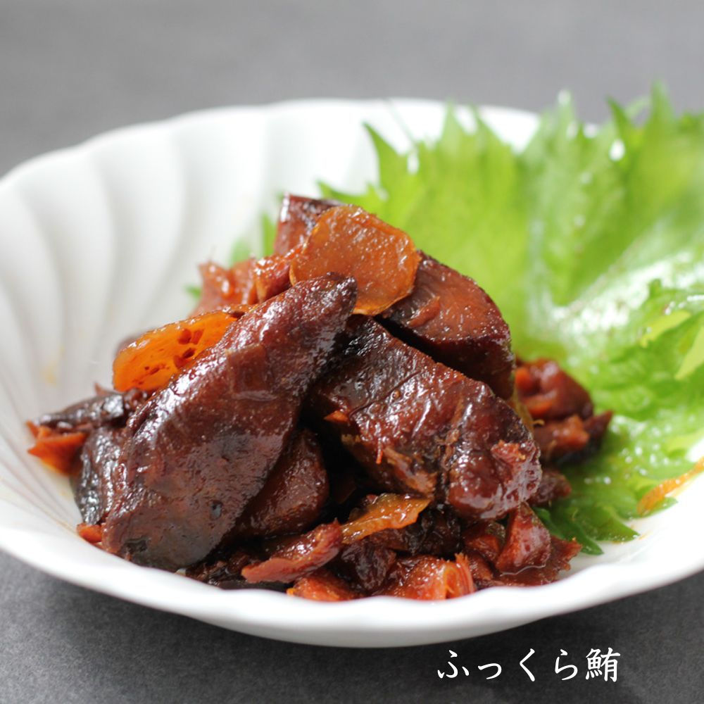 | 【ふっくら鮪】 | まぐろ(太平洋、インド洋)、醤油(小麦・大豆を含む)、砂糖、生姜、還元水飴、本みりん、発酵調味料、清酒、米酢、寒天 | |