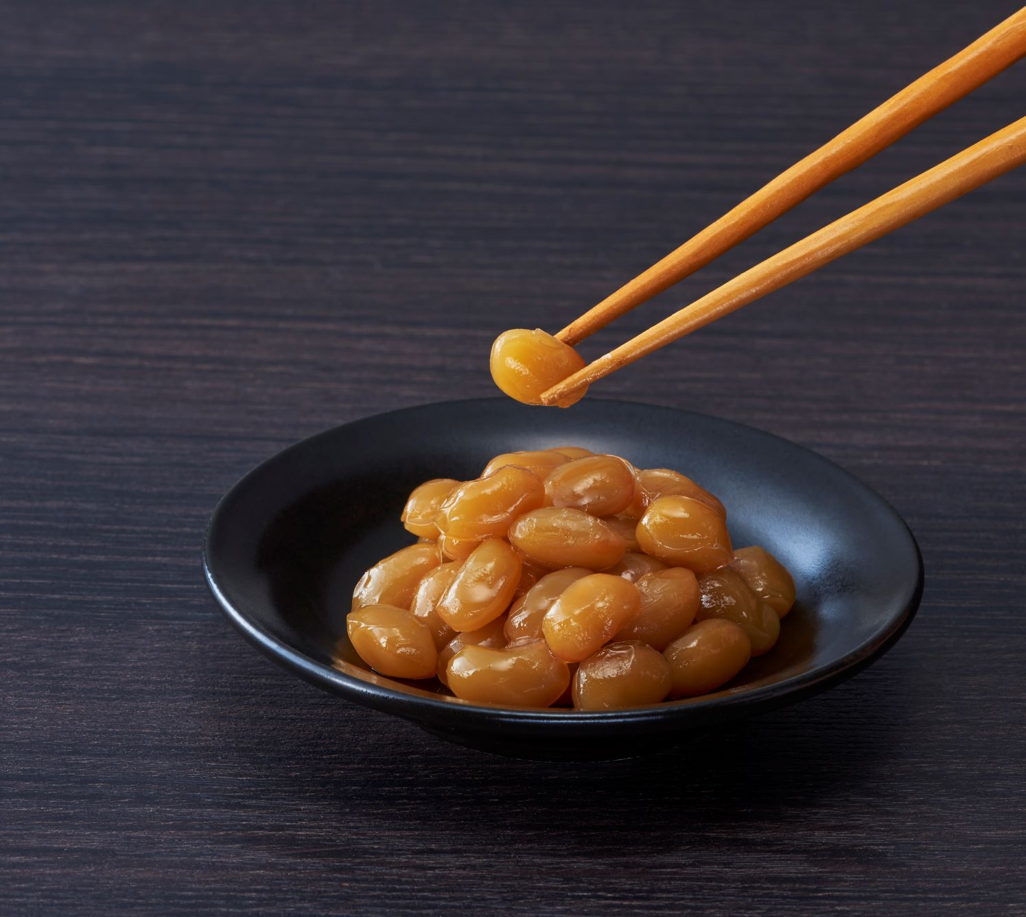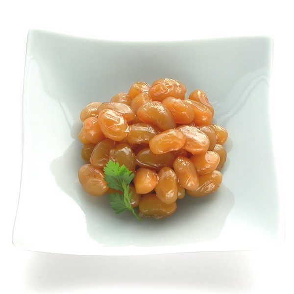 原料の大豆は大粒の最高級品を厳選しています。他の豆より糖度をおさえてあっさりした甘味に煮あげた手づくりの逸品です。
