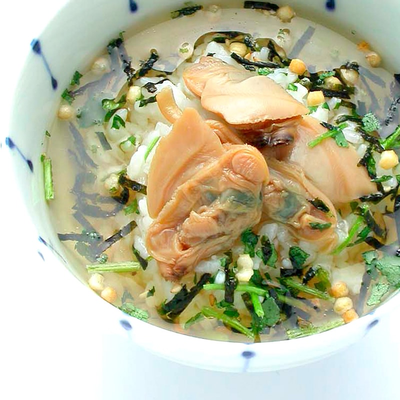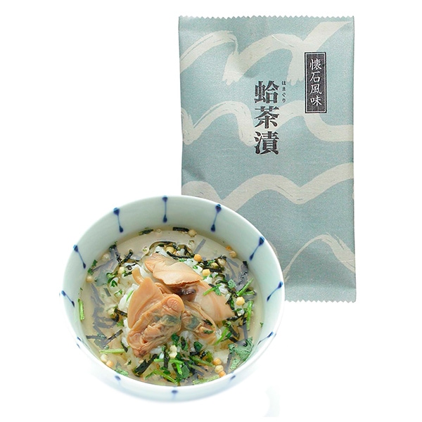 | 懐石茶漬蛤 | 熱量29kcal、たんぱく質2.7g、脂質0.5g、炭水化物3.4g、食塩相当量1.6g |