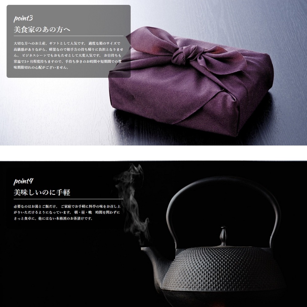独自の製法を取り入れて仕上げた茶漬の逸品です。
