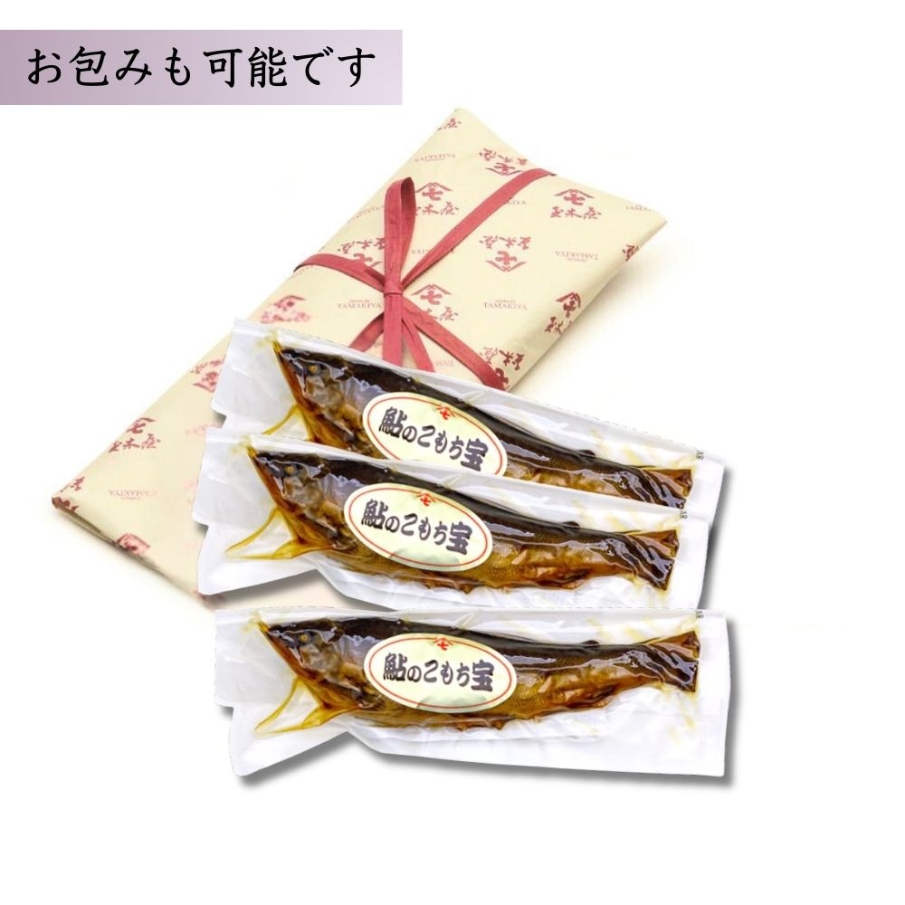 | 鮎のこもち宝 | 熱量270kcal、たんぱく質22.4g、脂質12.6g、炭水化物16.7g、食塩相当量2.2g |