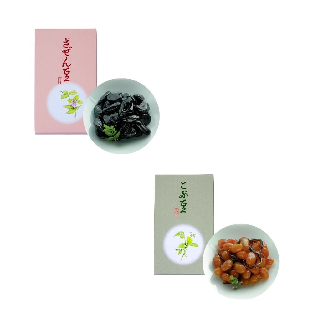 | 【こぶ豆】 | 大豆(国産)、砂糖、昆布、醤油(小麦・大豆を含む)、でん粉分解物、還元水飴 | |