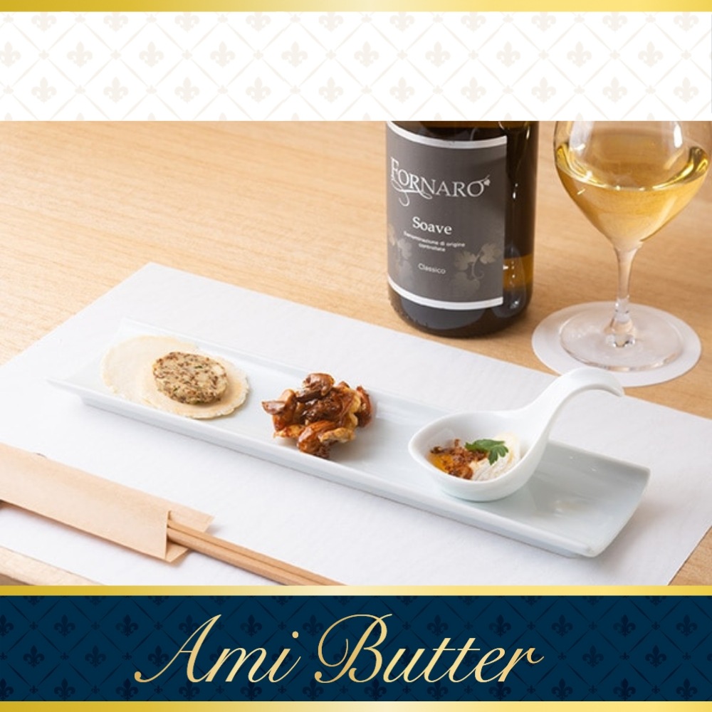 新橋玉木屋本店にて提供中の 『佃煮とワインのマリアージュコース』の前菜の一つである【あみバター】