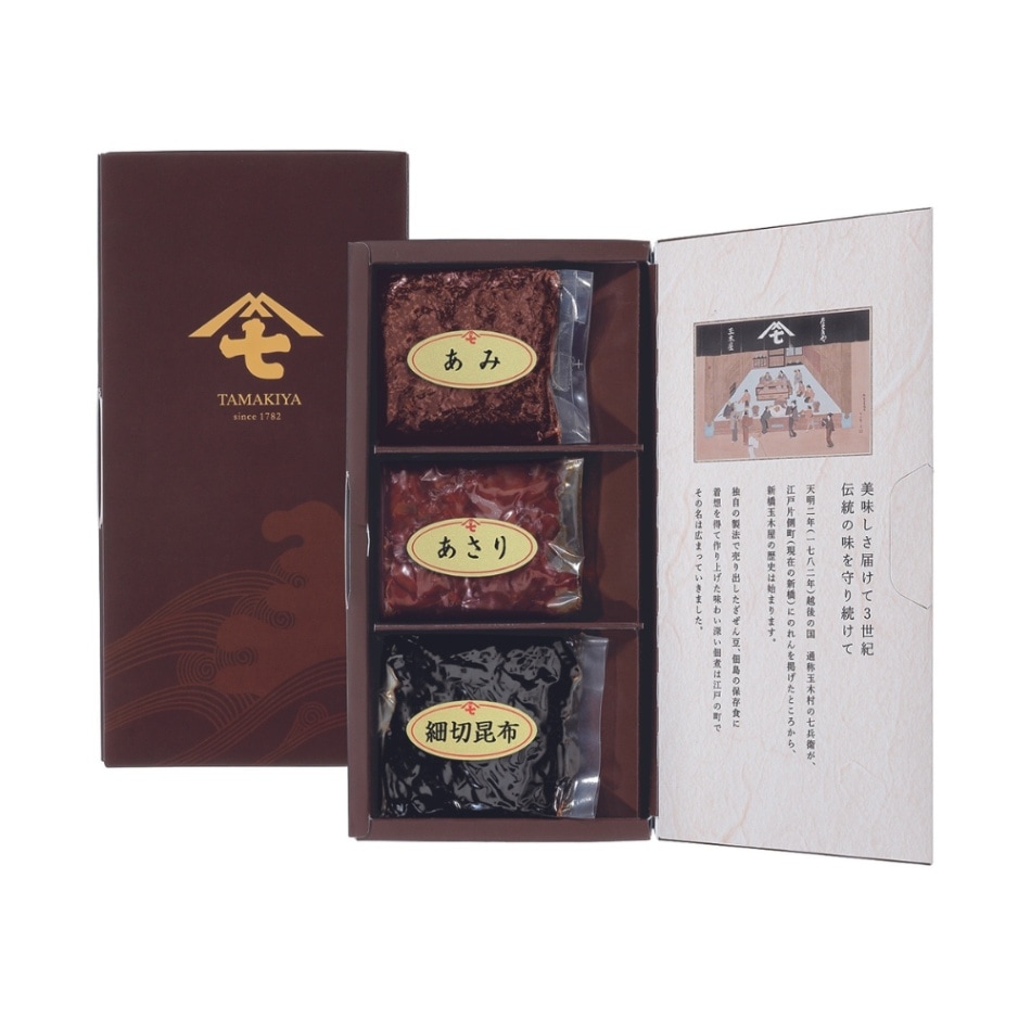 お茶漬けはもちろん、酒の肴、おにぎりの具材に、江戸時代より3世紀愛され続ける本物の佃煮の味をご堪能ください。