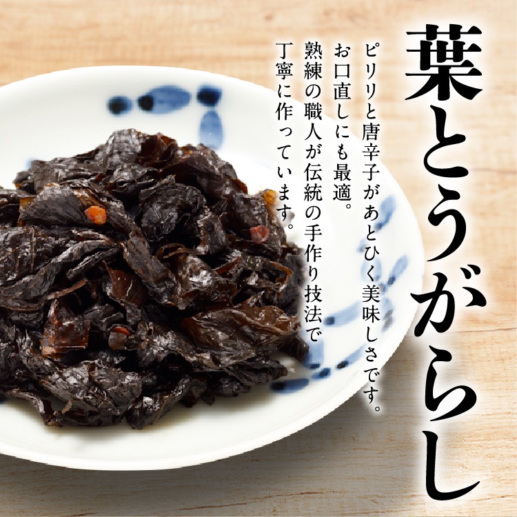| 【葉唐辛子】 | 葉唐辛子塩漬(中国製造)、醤油(小麦・大豆を含む)、砂糖、青唐辛子 |